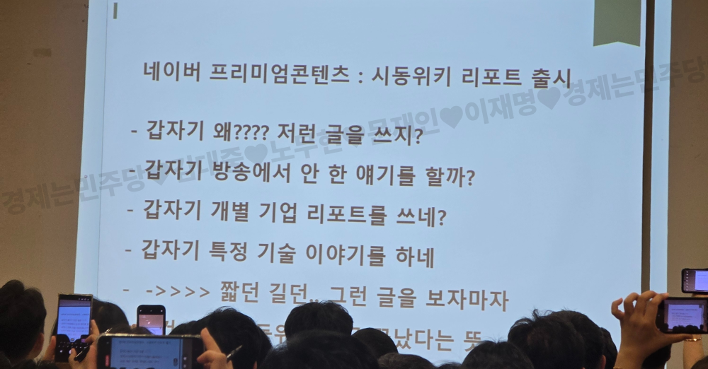 - 이광수 : 민주당 정권과 이재명 대통령이 앞으로 최소 5년간 주식시장에 은혜를 내려줄 거라 아는 사람들은 이미 몇달전부터 자산을 부동산에서 주식으로 많이 옮기고 있었음, 이재명 찍지도 않고 추운날 광장에 나오지 않은 2찍들만 주식으로 돈 버는 거 싫고 우리편들 주식 많이하면 좋겠음 꼭 해야됨!!!!!! 근데 종목만 알려달라고 하는 마인드는 금지임. 주식시장의 환경을 바라보는 눈을 길러가며 투자를 해야 우리도 부자 됩니다