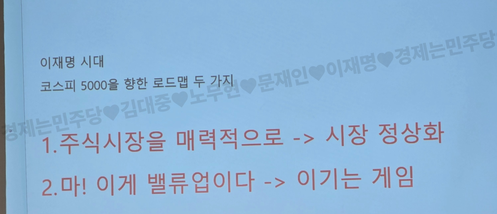 - 박시동 : 종목 알려드려도 여러분들 어차피 껄무새 되는 경우가 대부분이니 이재명 대통령의 주식시장 정책들이 주식 오르는데 왜 도움 되는 건지 쉽게 알려드릴게요. 이재명은 합니다! 이재명 대통령을 믿고 어떤 게 이재명의 정책주인지 알아볼 수 있는 눈을 같이 길러봅시다.